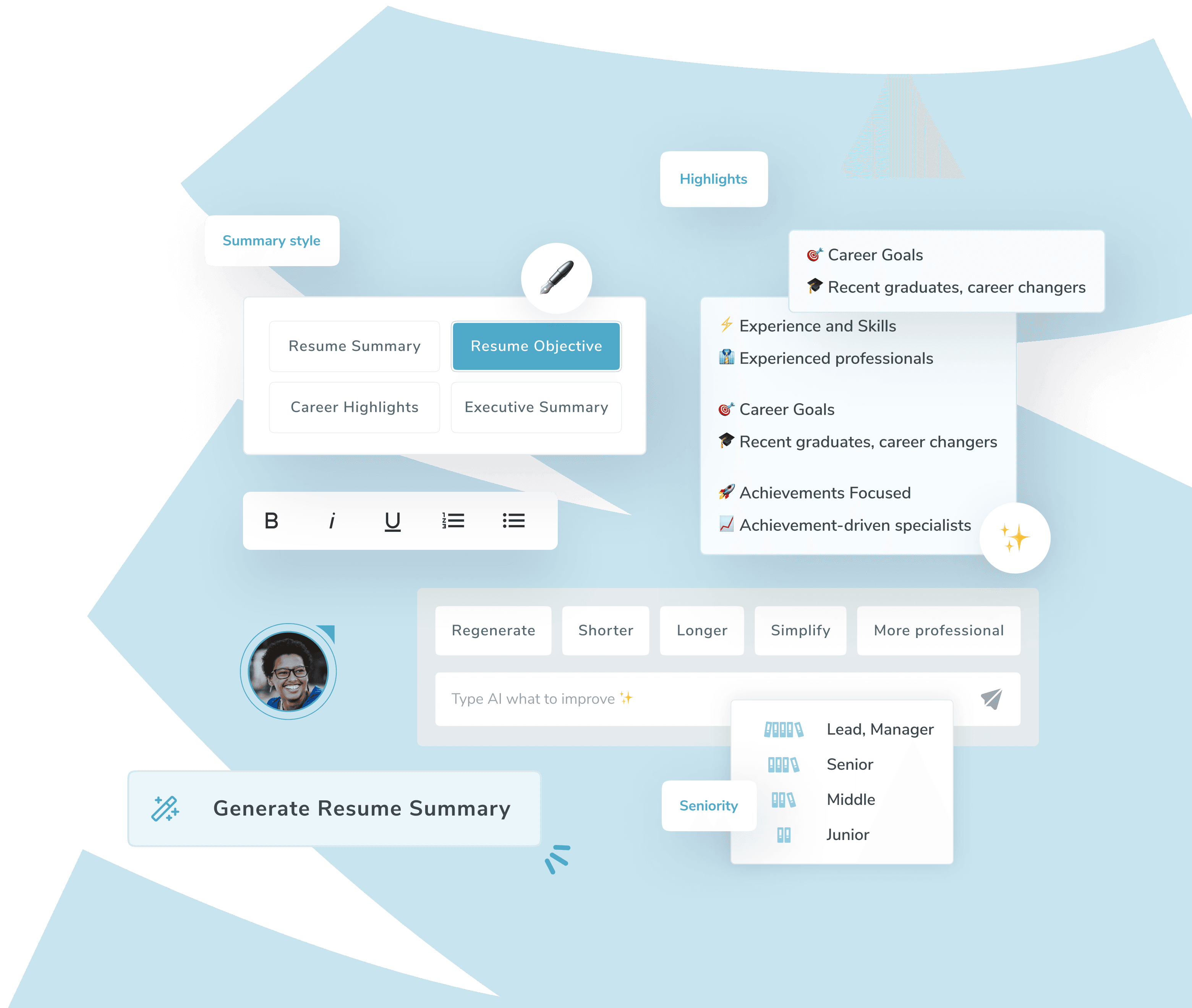 Get a resume summary that sets you apart. Our AI-driven approach ensures your summary is not only professionally polished but also uniquely yours, highlighting your achievements and skills in a way that catches the eye of recruiters.